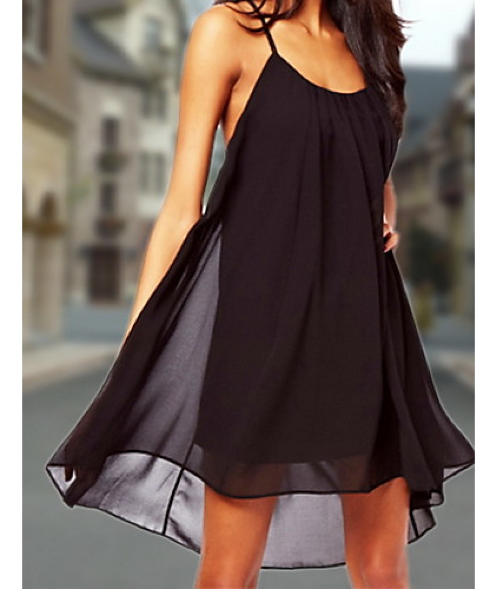 Women's Black/Green/Pink Summer Strap Sexy Backless Solid Color Asymmetrical Swing Midi Dress