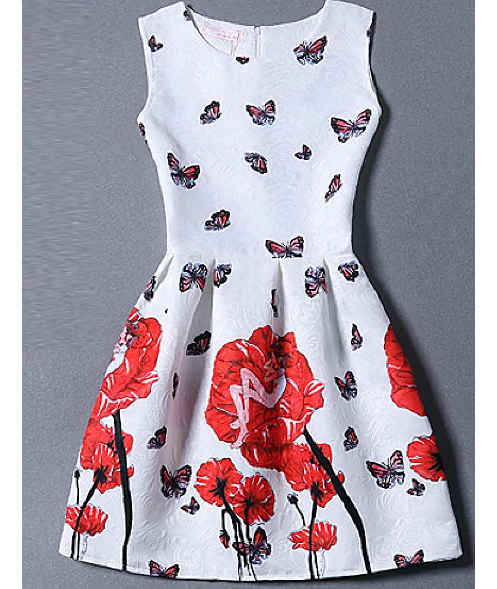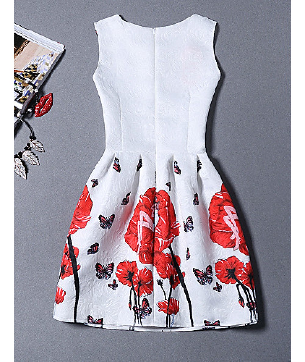 - Product Code: Women's Cute Floral A Line Dress,Round Neck Mini Polyester