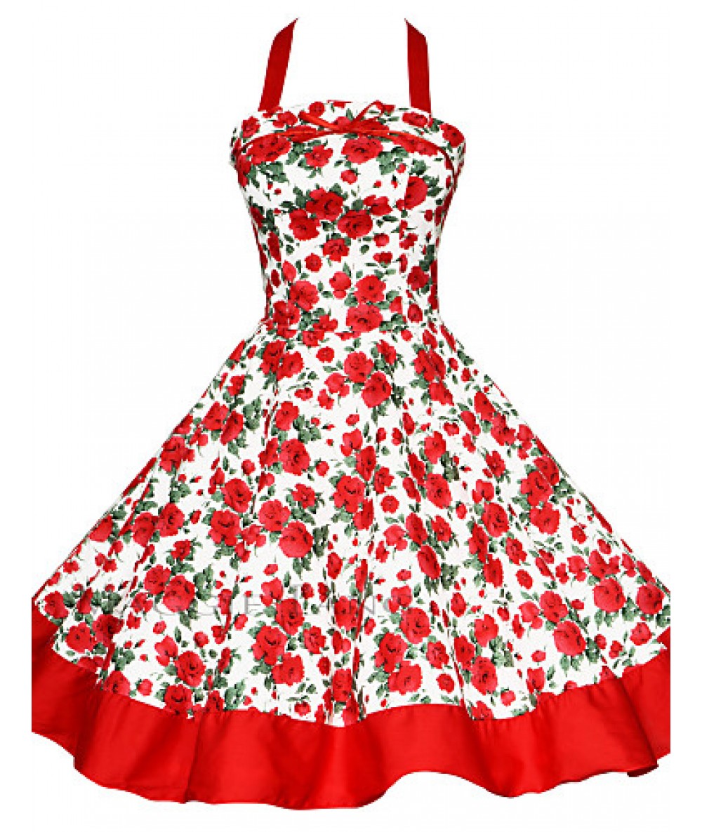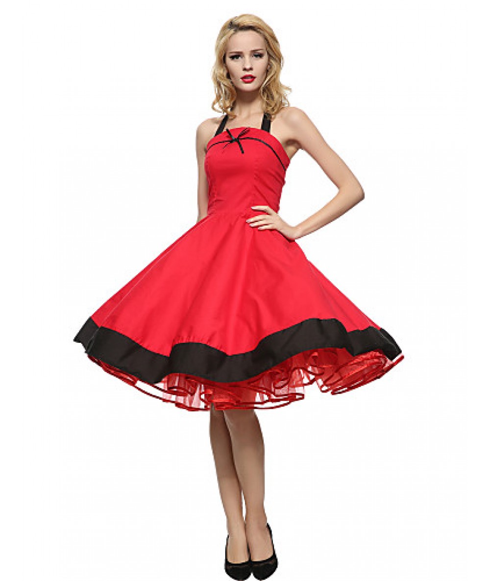 Women's Halter 50s Vintage Plus Sizes Swing Dress