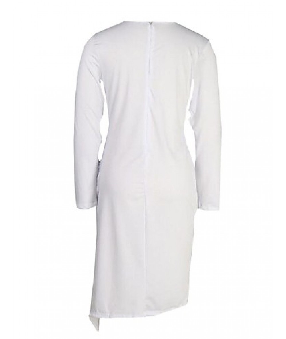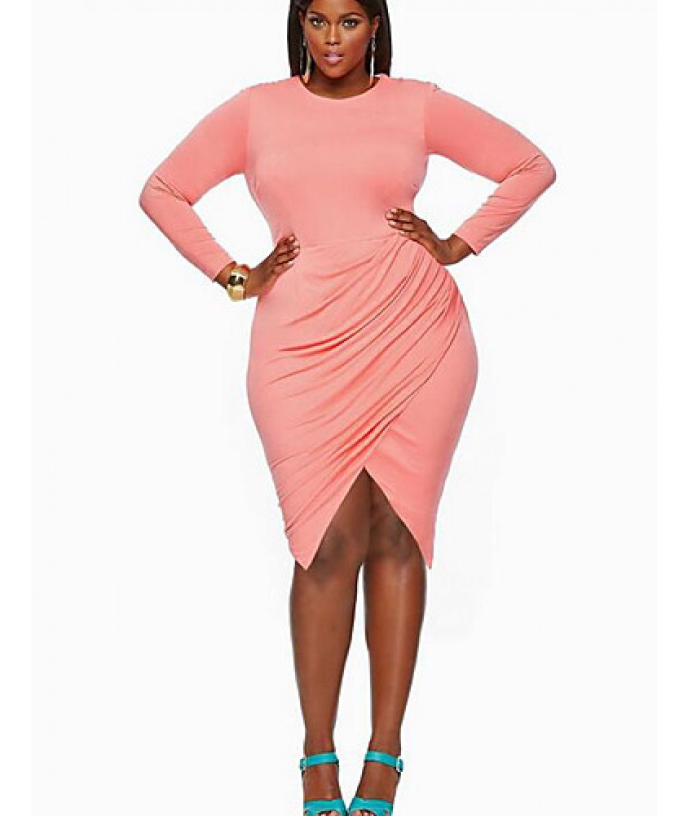Women's Going out Simple Plus Size / Sheath Dress,Solid Round Neck Asymmetrical Long Sleeve Pink / White