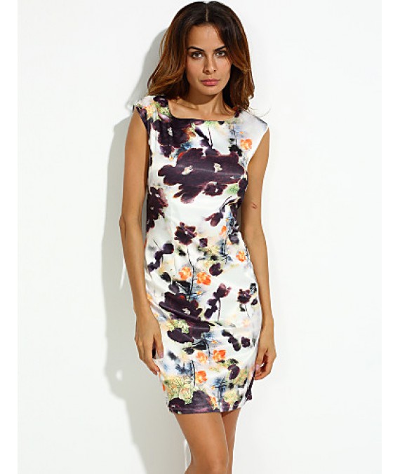 Women's Vintage Plus Sizes Micro Elastic Sleeveless Knee Length Dress (Satin)