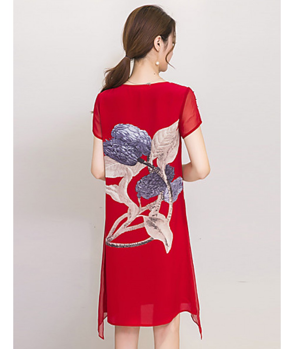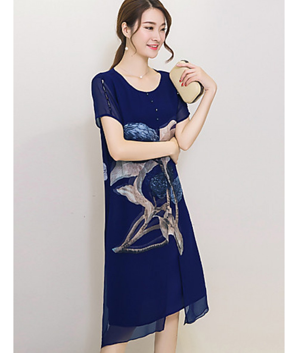• Product Code: Women's Street chic Print Plus Size / Loose Dress,Round Neck Kne