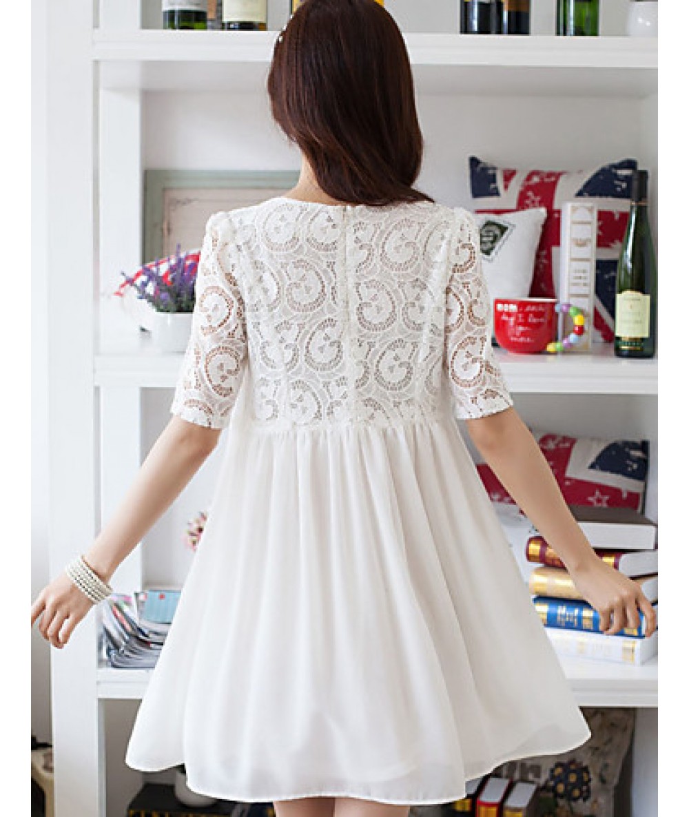 Women's Casual/Daily Cute Plus Size Dress U Neck Above Knee ? Length Sleeve Red / White / Black Summer